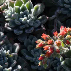 An echeveria plant with red blossoms