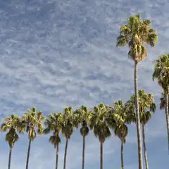 A row of Mexican fan palms