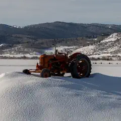 Disused tractor on a snow-covered field in Star Valley