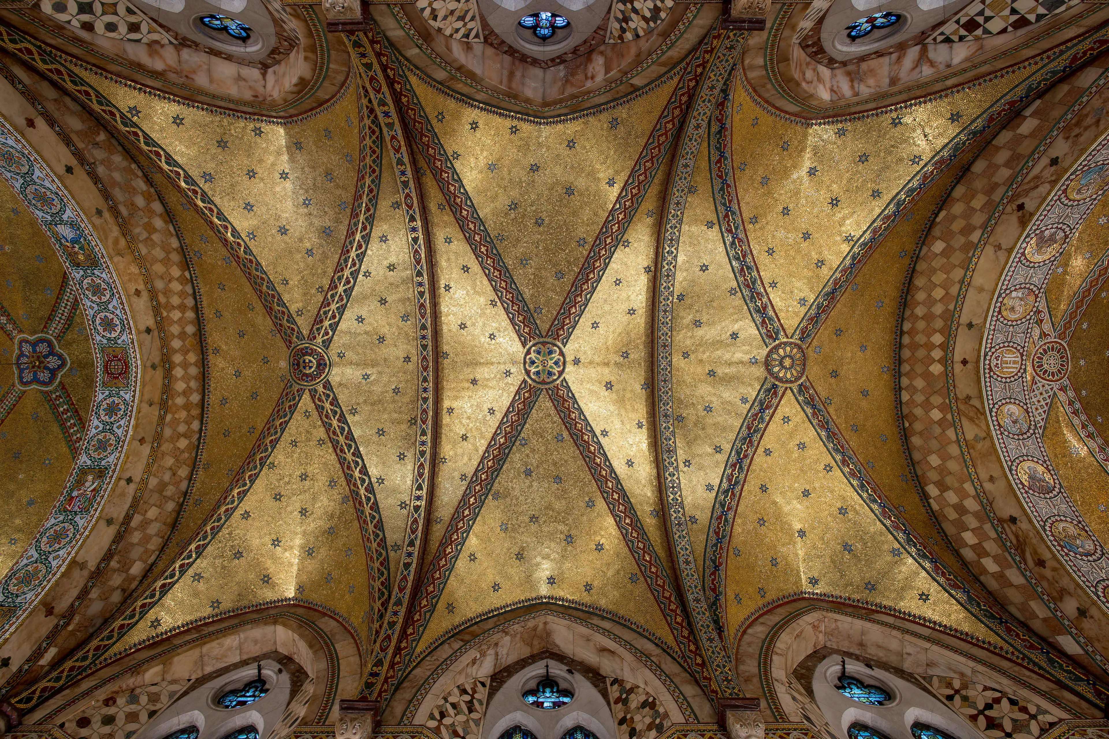 Mosaic ceiling of Fitzrovia Chapel, Westminster, London, GB