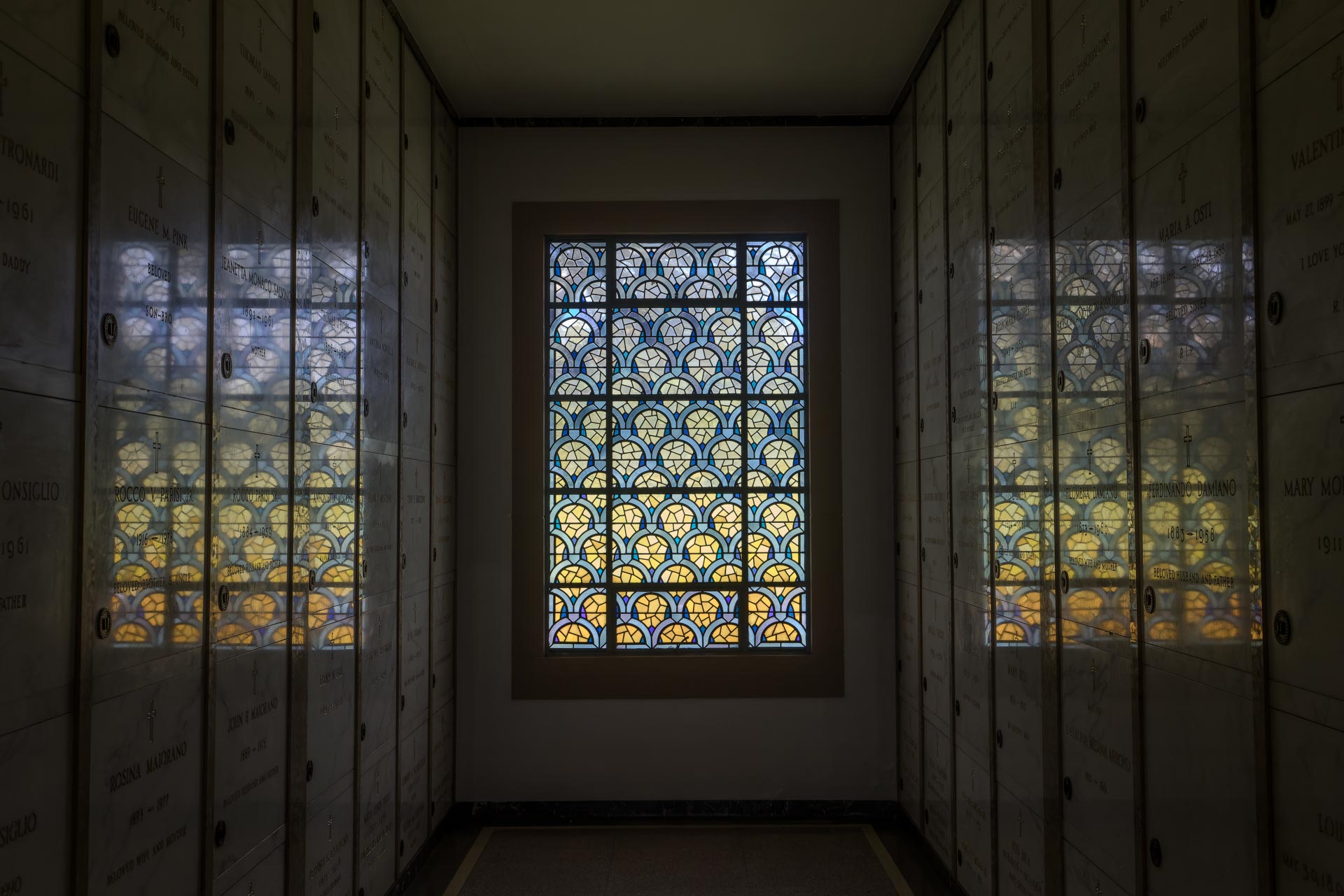 Stained glass at Calvary Cemetery, East Los Angeles, California, US