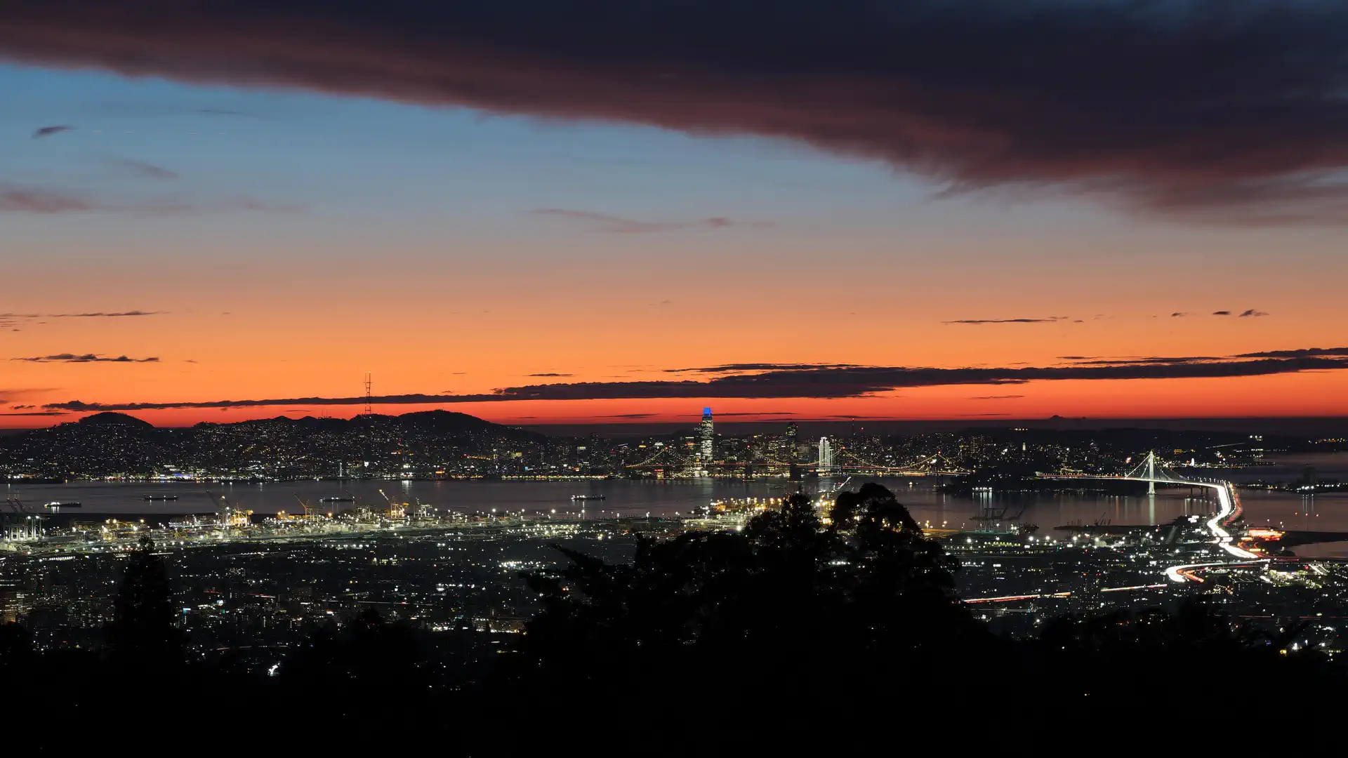 Twilight over San Francisco Bay from Oakland, California, US