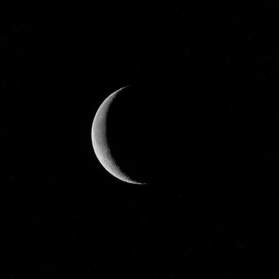Crescent moon over Dillon, Colorado, US