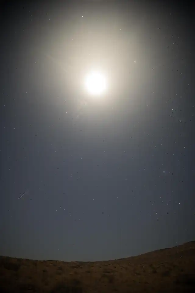 Orionids meteor shower and the moon over Cottonwood Spring, Utah, US
