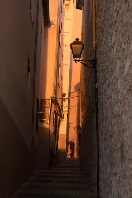 Alley at sunset, Cuenca, Castilla-La Mancha, ES
