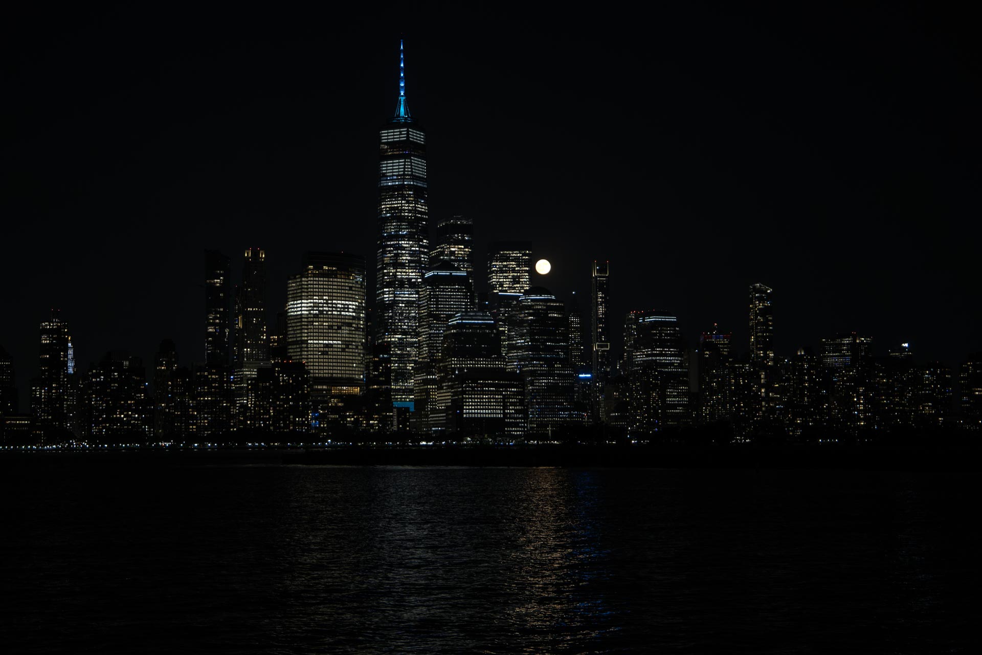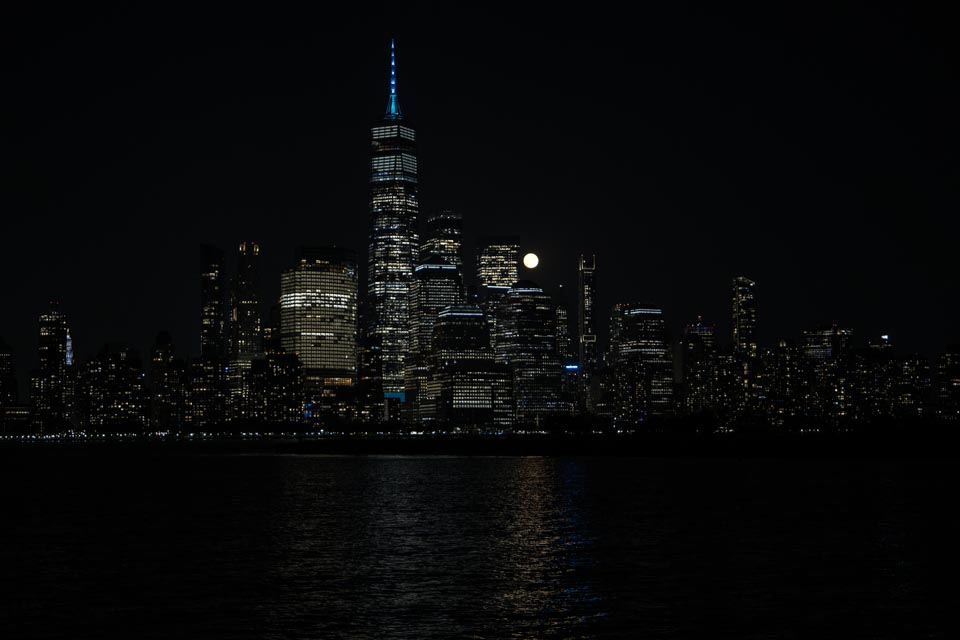 Full moon rise over lower Manhattan