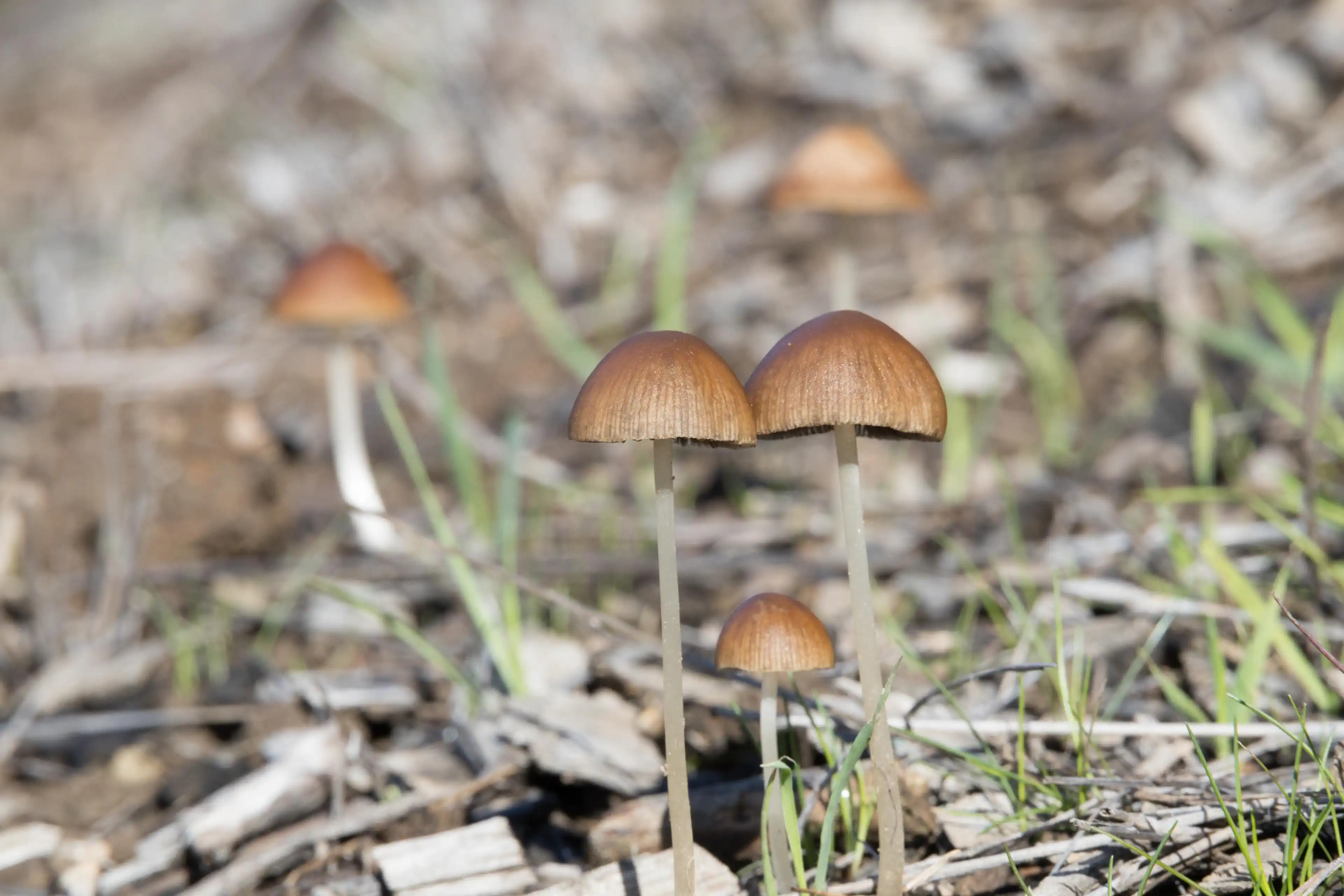 Umbrella inky caps sprouting in Oakland, California, US