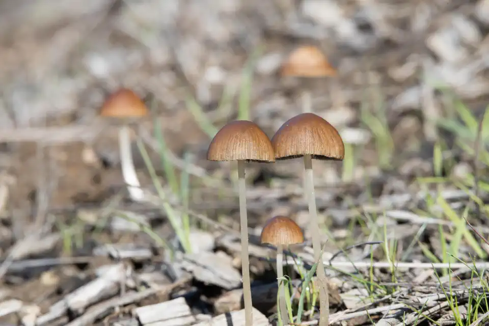 Umbrella inky caps sprouting in Oakland, California, US